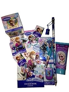 • 1 Frosted Berry Body Lotion 7 Ounce, 1 Elsa Bracelet, 1 Olaf Necklace & Bracelet Set, 1 Raspberry flavored Lip Balm, 1 Sticker Book with 300 stickers, 1 Pack Panini Frozen Stickers, 1- 24 piece Puzzle, 1 Jumbo Pencil with Sharpener, 2 Notepads, 1- 4 pack of miniature Flutes, 1 Lip Gloss Cell Phone and 1 pack Hair Ponies!