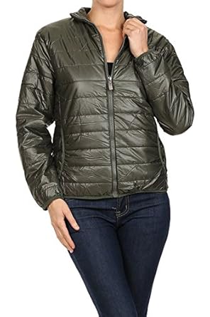 • DESCRIPTION: *Quilted jacket *Stand collar *Front zipper closure *Long sleeves *Pockets at waist *Lightweight feel *Lined *Hits at hip *Import *Junior size; adult women need to go up 1 to 2 sizes larger.