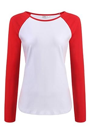 Meaneor Women Autumn Casual Long Sleeve Colorblock Baseball T-Shirt Blouse Tops