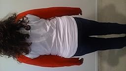 This casual long sleeved shirt is very nice. It drapes well and gives you a good shape! I like the red and white combination of colors. I haven't been able to find one like this, so happy I bought it.