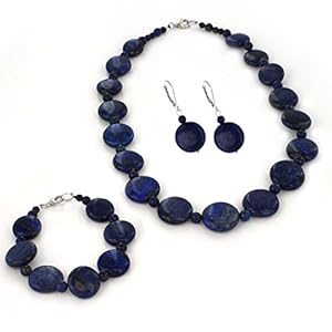 Give this sterling silver lapis jewelry set to a loved one that will make for a memorable gift. The set consists of one necklace, one bracelet and a pair of dangling earrings. The beaded lapis necklace has alength of 18 inches and fastens with a sterling silver lobster claw clasp. The necklace is paired with a lapis beaded 7 inch bracelet and closes with a sterling silver lobster claw clasp. The set is completed with a pair of beaded lapis dangling earrings which fasten with lever back clasps. The set comes packaged in a gift box and makes a great gift your family and friends will love.