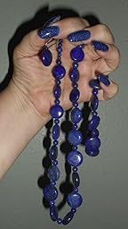 • Wear this fashionable blue lapis beaded necklace which measures 18" and is complemented by a matching blue lapis 7" bracelet and dangling earrings