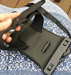 My Samsung Note 4 ACTUALLY FITS !! It is hard to find cases like this that will hold my monster-sized phone. I don't know exactly what it is made of, but it has a rubbery feel to it, almost silicone but it's not silicone, I don't believe. You slide your phone in, close the top of it with double flip-locking buttons on each side and your phone is secure from water and moisture and dust. I LOVE that there is an external audio jack built into this case, where you can listen to music while in the water and don't have to worry about phone damage. That is a very neat feature. It says it is certified up to 100 feet underwater. I don't plan on being that far underwater anytime soon, but I will be using it in the pool to take pictures of my kids this summer so I am excited to give this a try then. It comes with an armband or a lanyard so you can carry it either on your arm or around your neck. Plus, it floats, which is great for those of us who cannot seem to hold on to anything without dropping it a time or two. Also, if you don't want to put a phone in it, you can always use it for your keys, $$, or credit cards, drivers license, etc., and your goodies won't sink to the bottom of the lake if you are out boating or fishing or whatever it is that you like to do. The clear plastic is very sensitive to my touch screen. I had my mom take a selfie with my phone in the case, and as you can see, the picture is very, very clear and she looks super beautiful! I love this case and give it 5 stars with no hesitation!!! I received this product at a discount from the seller for an unbiased review. As a shopper, I realize how important honest reviews are. I make every effort to ensure my reviews are 100% honest and as detailed as I can get them in order to help others.
