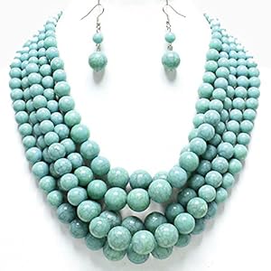 Simple Statement Layered Strands Turquoise Stone Look Pearl Beads Necklace Earrings Set Gift Bijoux