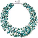 • Blue Turquoise Stone 5-Row Multi-Beaded Strand Necklace, 32"+3" Extender