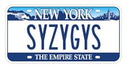The passion may also refer to Pickover's infatuation with the riddles of mathematics. He deals with classic problems such as that of the Bridges of Konigsberg or the always popular secrets of magic squares. Some of the mathematical investigations are a little further off the beaten track. For example, what is the most forgettable license plate? A friend of Pickover, a physicist, actually has a plate with the string of letters "syzygys." (See "customer image") Is this impossible to remember? Most people may say yes. However, it is easy to recall if you are a solar eclipse devotee or a fan of the musical group of that name. Pickover concludes that the string with the highest entropy (the most disorder) is the most forgettable, e.g., the binary string 11010010.