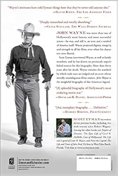 Early on Eyman points out that many past books or essays on Wayne have had a certain POV. Either the author verges on hero worship or, given Wayne's somewhat controversial politics, the author likes to spend time tearing down Wayne's image. Eyman has been around Hollywood for years, and in fact knew Wayne. He never comes out and says he is more liberal than Wayne, but I got that impression, but I also got the impression that he liked Wayne as a person and that he liked him as the subject of research and writing. (A couple of years ago I read Eyman's bio of Cecil B. DeMille, and in contrast, he either did not really like DeMille the man, or DeMille just plain wasn't as nice as Wayne. Both may be true.)