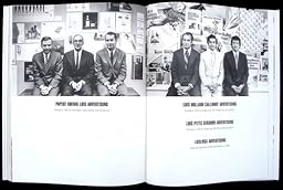 Like the covers, George has taken control of the book and done his own thing with the design: it starts inside the front cover; there is no real title page (instead a reproduction of an invitation to the MoMA Esquire cover exhibit); spread-wide photos of him are interspersed between the cover pages; some back pages are devoted to his ads and logos; plus a spread of covers of his eight idea books.
