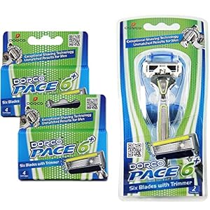 • Dorco Pace 6 Plus- Six Blade Razor System with Trimmer - Value Pack (10 Cartridges + 1 Handle)