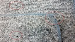 I was excited to come home to my amazon packages that had arrived yesterday, but when I opened my amazon basics cloths I was immediately disappointed. The towels were rough and linted, but worse than that the towel on the top of the stack was stained with some brown greasy stuff and there was a hole in the towel. I then went on to find 3 other towels in the same condition. This is unacceptable, and while I understand the product is a commodity and priced to be consumable, the quality of these towels is atrocious. I will most certainly be returning this item, and will be very wary of amazon basics products in the future.
