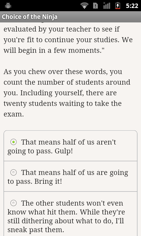 • Fixed a typing bug on 7th generation Kindle Fire devices. If you enjoy "Choice of the Ninja", please leave us a written review. It really helps!