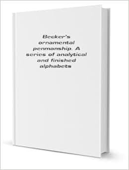 FACSIMILE: Reproduction Becker's ornamental penmanship. A series of analytical and finished alphabets [FACSIMILE] Originally published by Philadelphia,pbU. Hunt & son in 1854. Book will be printed in black and white, with grayscale images. Book will be 6 inches wide by 9 inches tall and soft cover bound. Any foldouts will be scaled to page size. If the book is larger than 1000 pages, it will be printed and bound in two parts. Due to the age of the original titles, we cannot be held responsible for missing pages, faded, or cut off text. 80 pages.