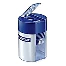 This pencil sharpener is the greatest high tech-low tech pencil sharpener I have ever seen. It holds the pencil in place, gradually moves the pencil into the sharpening blades and stops automatically when the pencil is insanely sharp--and it does it all mechanically by the power of hand crank. What else can I say? -