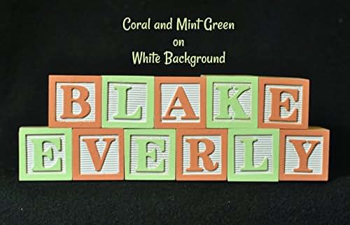 Personalized wooden alphabet blocks containing 11 LETTERS. We custom paint wooden alphabet blocks to spell out your child's name. Choose colors to match your nursery, room theme, party or baby shower colors. Please tell us the name, foreground, and background colors in the OPTIONS section to the right. SIZE IS APPROX 1 1/8" X 1 1/8". The sides of each letter will be unfinished natural wood. The back of the block will be a random letter that is painted white. For Express Production and 5-7 Day Delivery Add this Listing: https://www.amazon.com/dp/B06XVTZQLV