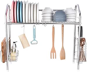 - Stainless steel material, polishing and welding process, prevent from rusting.The dish rack with height adjustment, sturdy, durable and more effective to storage.