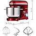 - Tilt Head and Outside Design - The tilt-head design mixer allows access to install or uninstall bowl and accessories easily. The kitchen mixer has a stainless steel decoration belt and blue LED light as power indicator. The Red housing with TWO LAYER PAINTING make it look more shining and beautiful in your kitchen.