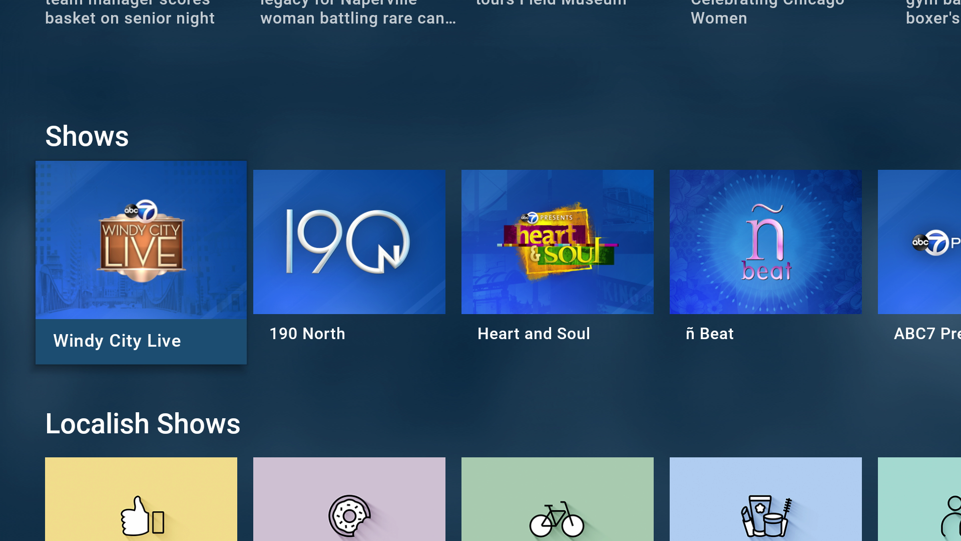 The ABC 7 Chicago app gives you free access to ABC 7 Eyewitness News and your favorite ABC 7 shows! Watch our live stream for live local news and must-see ABC 7 local programming. ABC 7 News brings you live newscasts, breaking news, local weather alerts and live events from across Chicago – all on your big screen TV. Plus, enjoy video on demand anytime! Watch local news and weather video and the best of our local programming - Windy City Live, Return to Auschwitz: A Survivor's Story, Heart and Soul, 190 North and Chicago's biggest community events like the Magnificent Mile Lights Festival, the St. Patrick's Day parade, the PRIDE parade and the Bud Billiken parade. You can also watch Localish, stories celebrating good people, good food and good living.
