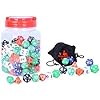 If you are a hard-core gamer, collect dice, need dice for a school project, fundraiser or other event, this 100 pack of random polyhedral dice is the perfect solution. Your dice will be selected from a bin of randomly allocated 4, 6, 8, 10, 12 and 20-sided dice. Each set of dice will include at least 105 random dice, in which we guarantee multiples of 4, 6, 8, 10, 12 and 20-sided dice. You will receive at least 15 different colors in this lot, including both translucent and opaque colors. The dice in this set are factory firsts and are brand-new in mint condition. With sharp edges for great random game play, these dice are perfect for math students, teachers, gamers and more. Each die has large numbers to ensure easy reading. The 6 and 9 on each die are clearly marked with an underscore for easy recognition. Each order includes