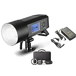 - [Two Power Supply Methods] Professional lithum battery pack to provide 390 full power flashes and recycle in 0.01-1second. You can also purchase Godox AC400 AC power source(sold separately) to achieve AC-DC dual-purpose.