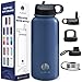 ALBOR Insulated Water Bottle with Straw, 32 Oz - 100% Leak-Proof with 4 Lids (2 Straw Lids) - Triple Insulated Stainless Steel Water Bottles, Reusable Water Bottle, Navy