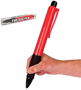 This Pen is gigantic, its got a great grip on it, a nice pocket clip to clip it on your pants. this is one pen you will never have to worry about losing. This is a cool funny gift! I love it!