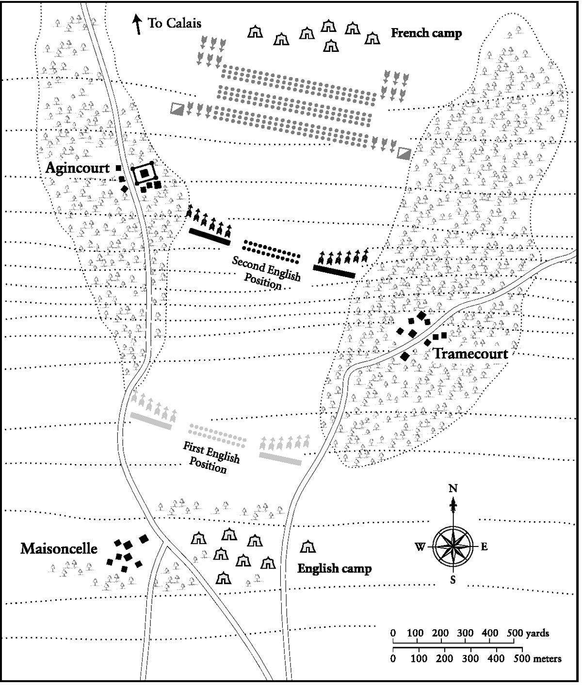 The battle of Agincourt (Azincourt was and remains the French spelling) was one of the most remarkable events of medieval Europe, a battle whose reputation far outranked its importance. In the long history of Anglo-French rivalry only Hastings, Waterloo, Trafalgar, and Crécy share Agincourt’s renown. It is arguable that Poitiers was a more significant battle and an even more complete victory, or that Verneuil was just as astonishing a triumph, and it’s certain that Hastings, Blenheim, Victoria, Trafalgar, and Waterloo were more influential on the course of history, yet Agincourt still holds its extraordinary place in English legend. Something quite remarkable happened on 25 October 1415 (Agincourt was fought long before Christendom’s conversion to the new-style calendar, so the modern anniversary should be on 4 November). It was something so remarkable that its fame persists almost six hundred years later.