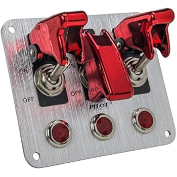 Pilot Automotive PL-SW53R Performance 3 Row Red Anodized Safety Cover Toggle Switch with Red Indicator Lights