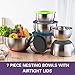 AIKKIL Mixing Bowls with Airtight Lids, 20 piece Stainless Steel Metal Nesting Bowls, Non-Slip Colorful Silicone Bottom, Size 7, 3.5, 2.5, 2.0,1.5, 1,0.67QT, Great for Mixing, Baking, Serving