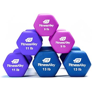 Fitness Alley Neoprene Dumbbell 3 Pairs Set Coated for Non Slip Grip - Hex Dumbbells Weight Set - Neoprene hand weight pairs - Hex Hand Weights Neoprene Dumbbells Combo (9 lb, 11 lb, 13 lb)