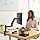 I mainly work from home as I run businesses from home and part of it is graphic designing. Working from home has its pros and cons depending on discipline you are and that discipline can change from time to time. You can easily get lazy or lose focus from distraction because you a re at home thus why I move from master bedroom to another room to family room, to even outside to find my zone or just to wherever I feel like working. I can stand up and sit while working and if I get tired I use the *Brenton Studios Jaffin Active Stool to rest my butt on it. If I want to work lazy while watching TV in the family room, I can move my desk near the recliner, prop my foot up and pull out the monitor out attached to *Amazon Basic single arm mount and it extends far, high, light, rotate, tilt and everything to move it where I need it to be. Laying down on the bed as well is just the same and adjusting the desk height, easy as a crank.] Even if I have a party at home I can roll my desk out and use my computer as a karaoke system by using youtube (type karaoke before the song), connect my analog mixer (Yamaha MG06X) along with my mics (Shure SM58-LC) and output the sound to my living room system, or my *Altec Lansing ALP-X800 if outside by line in all you need is the cable 3.5 to rca to aux converters. It rocks. To complete my system Im just waiting for soundbar to come down in price or refurbished (preferably the Yamaha MusicCast Bar 400) to attach to my monitor on the mount with *Mount-it Soundbar Bracket and mount the sub on the left side of the foot of my desk opposite of my stool (Brenton Studios Jaffin Active Stool).