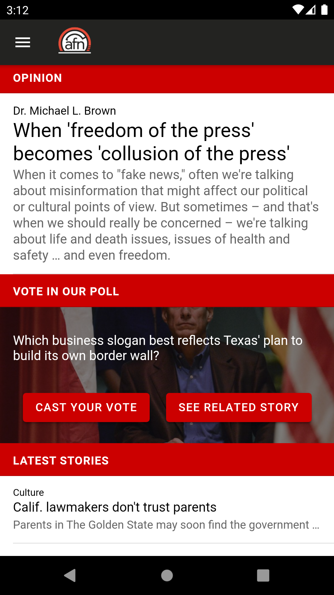 AFN.net is the news website of the American Family News Network and the American Family Association. It exists to present the day’s stories from a biblical perspective on such topics as politics, education, culture, national security, pro-life, media, and more. AFN features the latest breaking stories from across the U.S. and around the world, as well as news of the challenges facing Christians in today’s society.