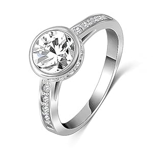 • AnaZoz Jewelry Wedding Ring 18K Rose Gold Plated Engagement Ring Round Austrian Crystals