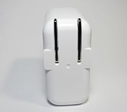 - A bit large. This sticks out from the wall about 2 inches. That doesn't bother me so much. What bothers me more is this charger covers up holes of a neighboring outlet on most of my power strips, surge protectors etc. In a standard wall power outlet it doesn't cover neighboring power outlet holes. Unfortunately it does occupy two holes on the surge protector strip I use at my computer desk at the office. This is unfortunate because this is a spot where space is a premium and I definitely can't afford to lose a plug/outlet. No matter where I place this, even at the last outlet on the strip, it blocks the third grounding hole.
