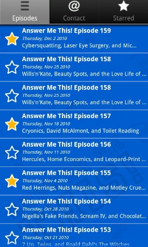 On app design: I really like how you can star episodes to keep track of what has been listened to and what is still in the hopper. I like that you can either download or stream, which is really helpful given my dodgy office WiFi. I can load up a bunch of episodes at home for office listening and not have to deal with an intermittent connection.