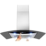 FIREBIRD 30" Stainless Steel Tempered Glass LED Display Touch Control Panel Island Mount Kitchen Vent Cooking Fan Range Hood