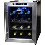Wine Enthusiast 272 02 13W Stainless Steel/Wood Shelves Silent 12-Bottle Wine Cooler, Stainless