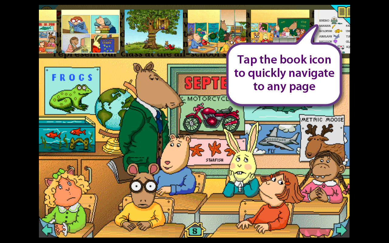 Play inside the story and interact with all the characters and words with Arthur’s Teacher Trouble, an imaginative and interactive reading experience with fully animated content loved by children, parents and teachers alike. Wanderful brings every page of this great Marc Brown story to life. Read and play along as Arthur learns to cope with his strict new teacher, Mr. Ratburn and compete in a school-wide Spelling Bee. Will he study hard for the competition? How will he do?