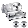 Meat Slicer, Anescra 200W Electric Deli Food Slicer with Two Removable 7.5’’ Stainless Steel Blades and Food Carriage, Child Lock Protection, 0-15mm Adjustable Thickness Food Slicer Machine- Silver