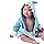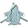 - Sea-blue terry robe with white cuffs, two terry ties in front, a hood with smiling, white shark's teeth, appliqued black eyes and a dorsal fin accent.