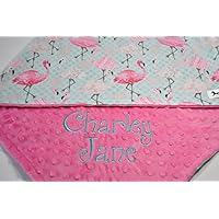 Personalized baby blanket - Personalized minky baby blanket - Minky baby blanket pink Flamingo - Personalized Pink Flamingo minky baby blanket - Flamingo baby girl blanket