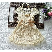 Girl's Beige Lace Dress with Floral Satin Sash, USA, Flower Girl Outfit, Princess Birthday , 2nd Birthday, Kids Fashions, Size 2.