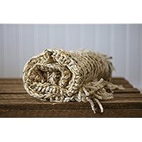 Newborn Blanket Stuffer Nursery Photography Prop Hand Knit Beige Loose Stitch Fringe Unisex