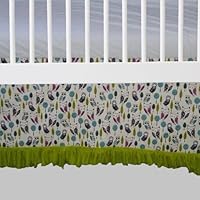 Green Tulle Edge Beige Crib Skirt 16 Inch Drop 3 Sided