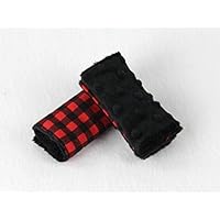 Reversible Car Seat or Stroller Strap Covers - Red and Black Plaid with Black Minky backing - Ready to Ship!