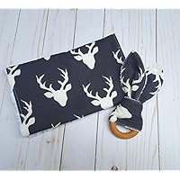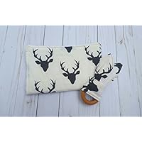 White and Black Buck Forest Gift Set- teething ring and burp cloth, baby shower gift
