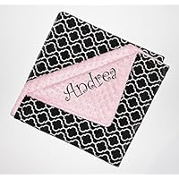 Personalized Baby Girl Trellis Double Minky Baby Blanket - Baby Pink and Black