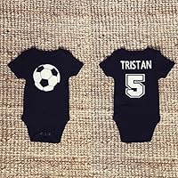Handmade Newborn Baby Soccer Ball Black Onesie Bodysuit Personalized Name & Number on the back