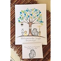 Customizable fingerprint tree guestbook for an elephant-themed baby shower, gender neutral, Personalized for you, baby shower guestbook