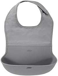 OXO Tot Waterproof Silicone Roll Up Bib with Comfort-Fit Fabric Neck, Gray