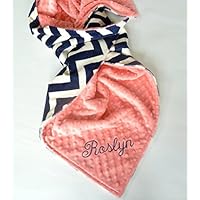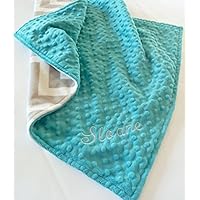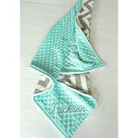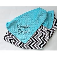 Personalized Double Minky Chevron Baby Blanket - Black, Gray and Turquoise Blue